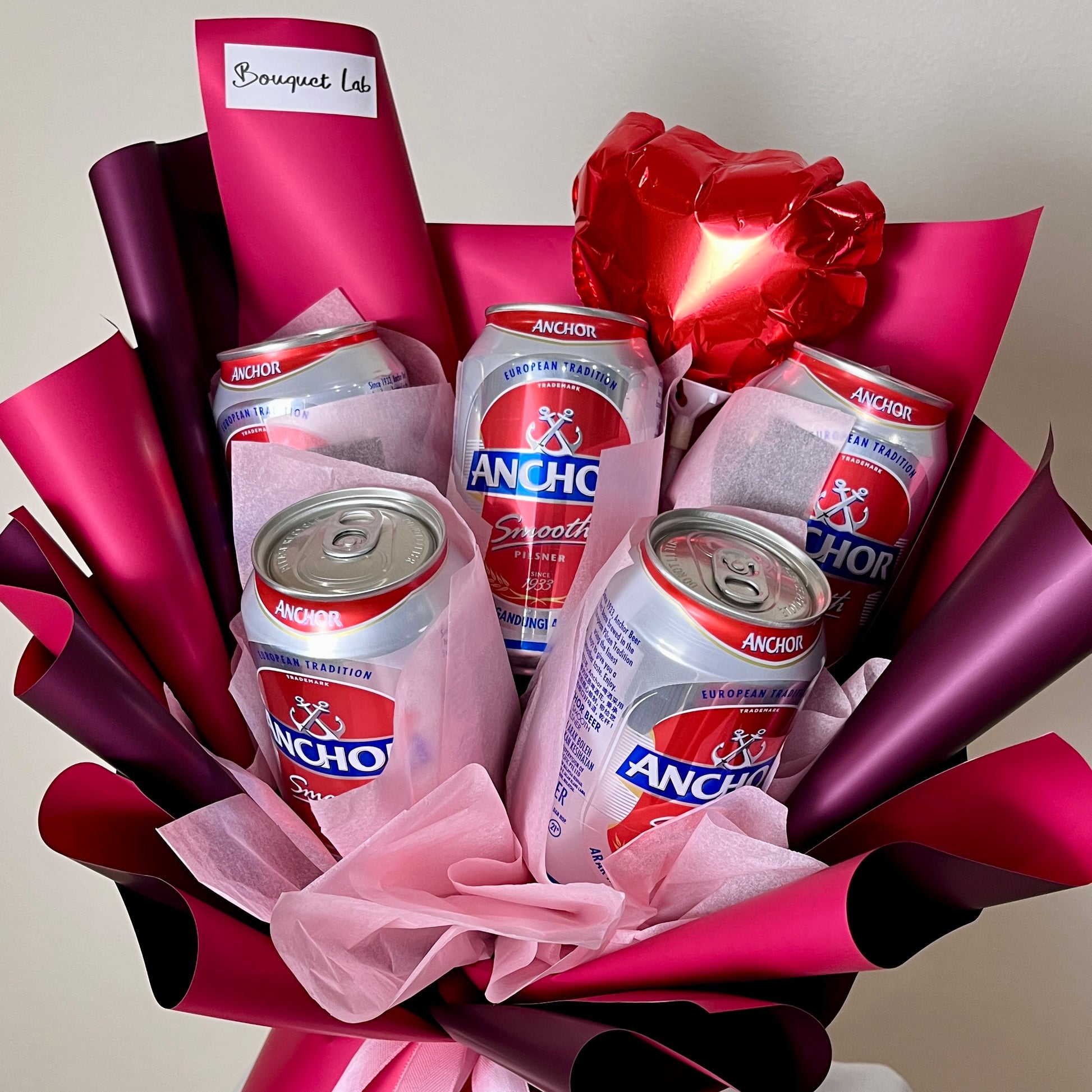 - Anchor beers and a love balloon.