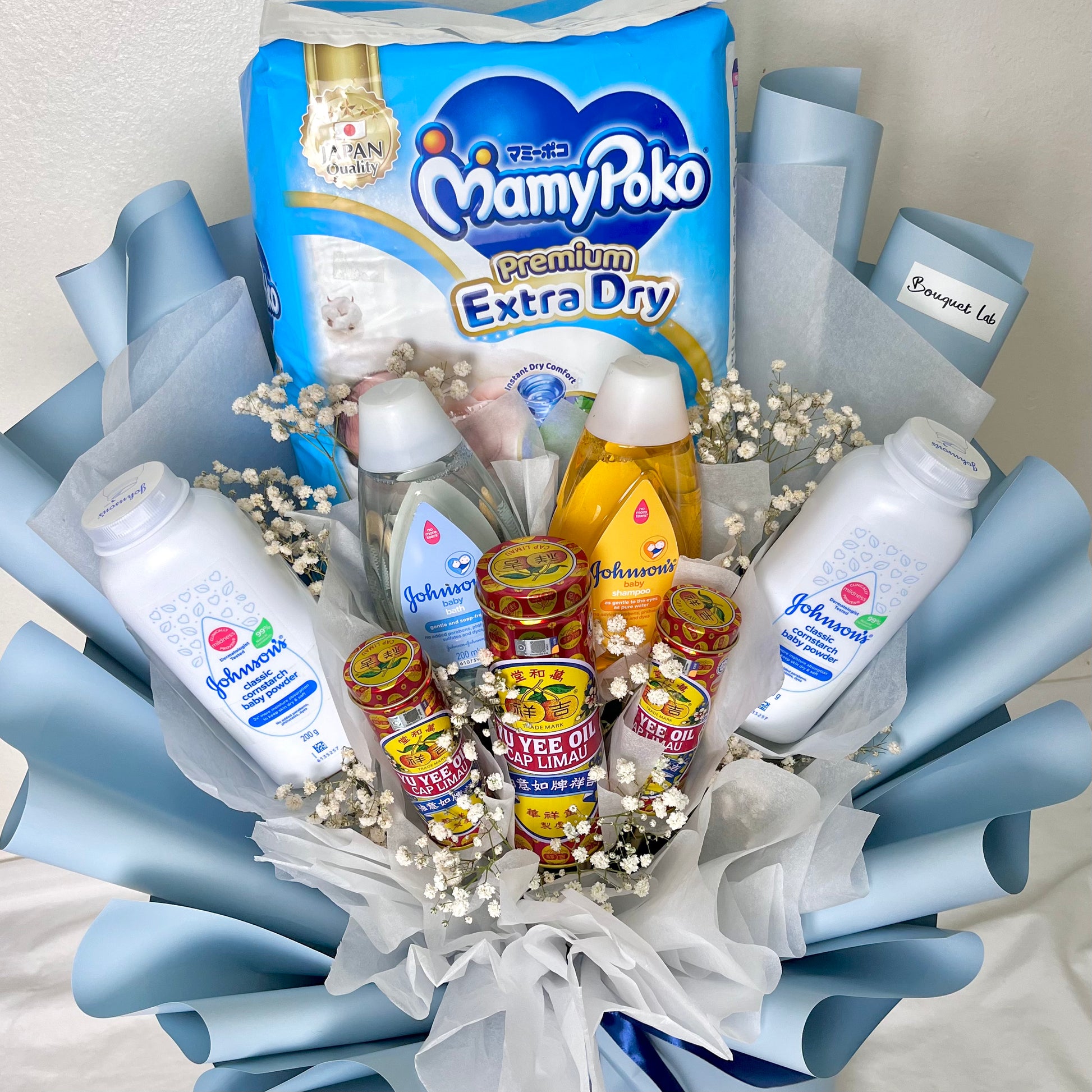A sweet blend of baby essentials and floral charm. Thoughtfully arranged to pamper both baby and parents, this bouquet is a beautiful way to say “Welcome to the world” with love, care, and tender blessings.