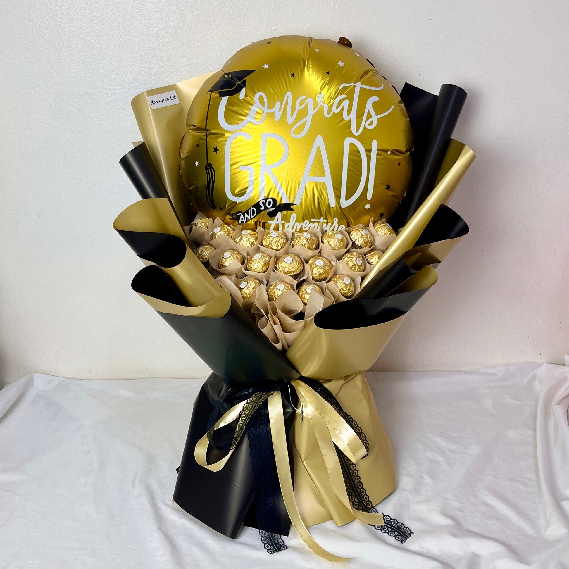 Celebrate their big milestone with a burst of joy — literally! This vibrant balloon bouquet is all about good vibes, proud moments, and looking up to brighter tomorrows. Whether it’s for a kindy grad or a university achiever, it’s the perfect pop of fun to say “Congrats, Grad!”