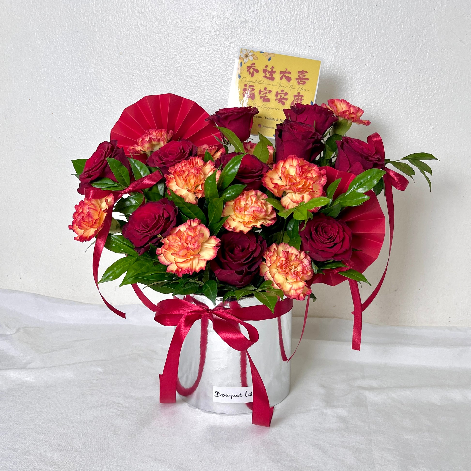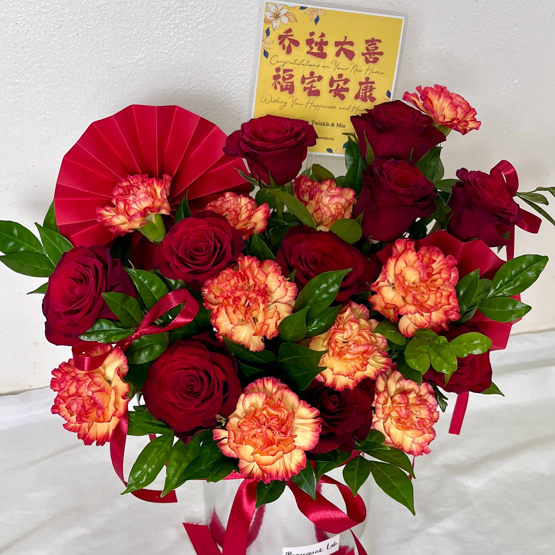 Roses bring love and warmth, while carnations symbolize joy and good fortune — the perfect duo to bless a new home with harmony and happiness. Elegant yet heartfelt, this floral box makes a beautiful centerpiece and a meaningful housewarming gift that leaves a lasting impression.